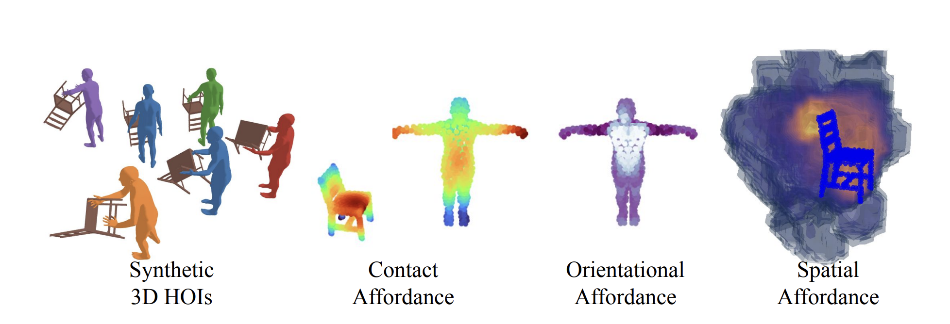 Grounding 3D human-object affordances using generative models and dense diffusion flows.
